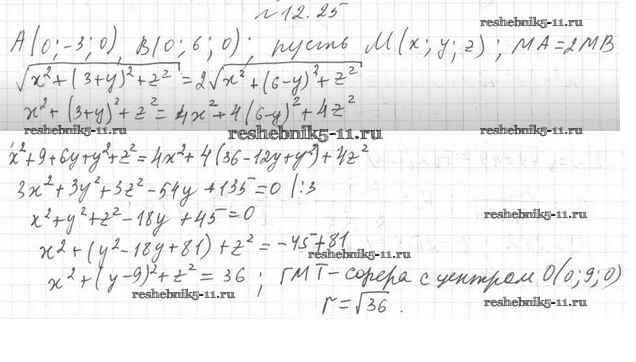 Готовая домашняя работа с ответами по Геометрии за 11 класс Мерзляк, Номировский, Полонский, Якир Учебник Алгоритм успеха Базовый уровень Вентана-граф 2019 ФГОС - §12. Сфера и шар. Уравнение сферы 12.25