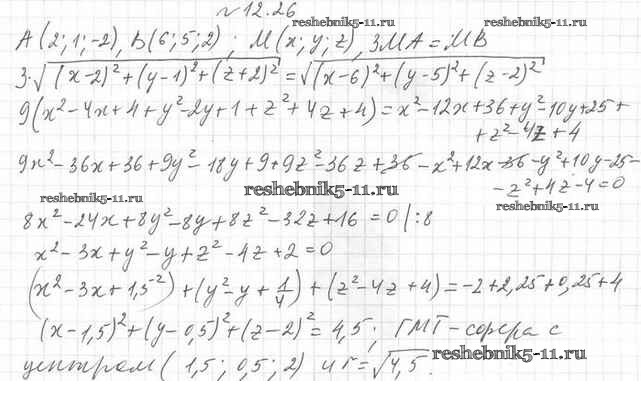 Готовая домашняя работа с ответами по Геометрии за 11 класс Мерзляк, Номировский, Полонский, Якир Учебник Алгоритм успеха Базовый уровень Вентана-граф 2019 ФГОС - §12. Сфера и шар. Уравнение сферы 12.26