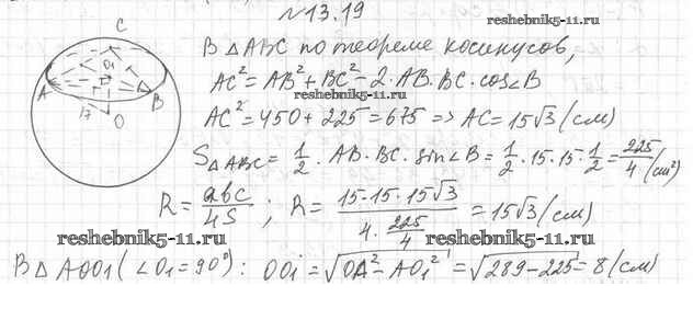 Готовая домашняя работа с ответами по Геометрии за 11 класс Мерзляк, Номировский, Полонский, Якир Учебник Алгоритм успеха Базовый уровень Вентана-граф 2019 ФГОС - §13. Взаимное расположение сферы и плоскости 13.19
