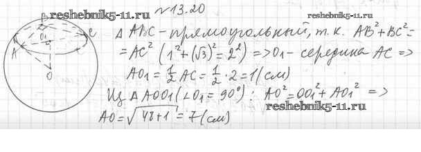 Готовая домашняя работа с ответами по Геометрии за 11 класс Мерзляк, Номировский, Полонский, Якир Учебник Алгоритм успеха Базовый уровень Вентана-граф 2019 ФГОС - §13. Взаимное расположение сферы и плоскости 13.20