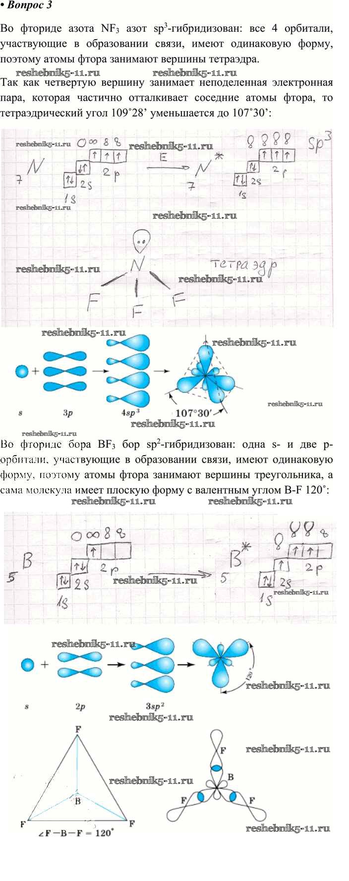 Готовая домашняя работа с ответами по Химии за 11 класс Габриелян, Лысова Учебник Вертикаль Углубленный уровень Дрофа 2017 ФГОС - §7. Гибридизация атомных орбиталей и геометрия молекул 3