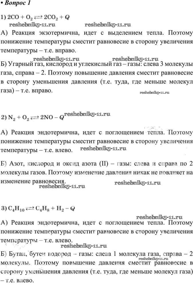 Готовая домашняя работа с ответами по Химии за 11 класс Габриелян, Лысова Учебник Вертикаль Углубленный уровень Дрофа 2017 ФГОС - §14. Обратимость химических реакций. Химическое равновесие 1