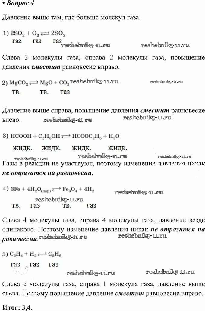 Готовая домашняя работа с ответами по Химии за 11 класс Габриелян, Лысова Учебник Вертикаль Углубленный уровень Дрофа 2017 ФГОС - §14. Обратимость химических реакций. Химическое равновесие 4