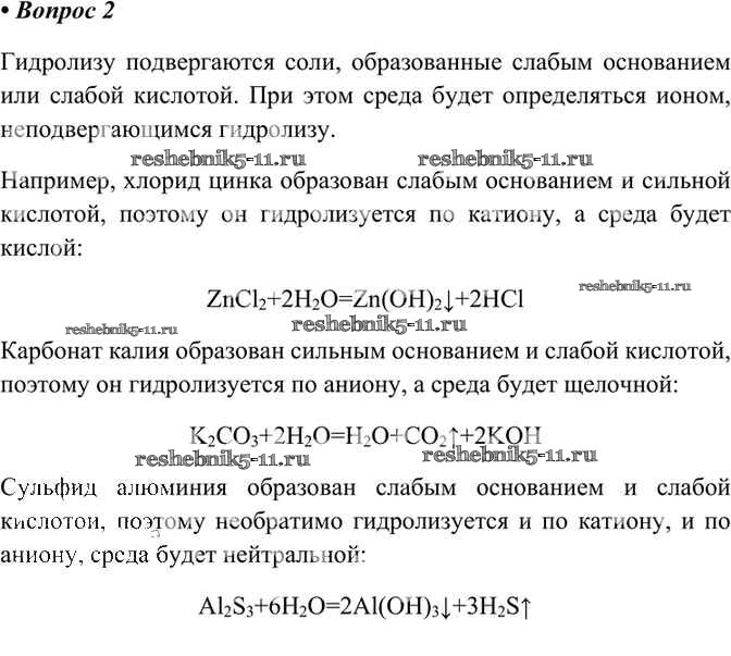 Готовая домашняя работа с ответами по Химии за 11 класс Габриелян, Лысова Учебник Вертикаль Углубленный уровень Дрофа 2017 ФГОС - §16. Гидролиз 2