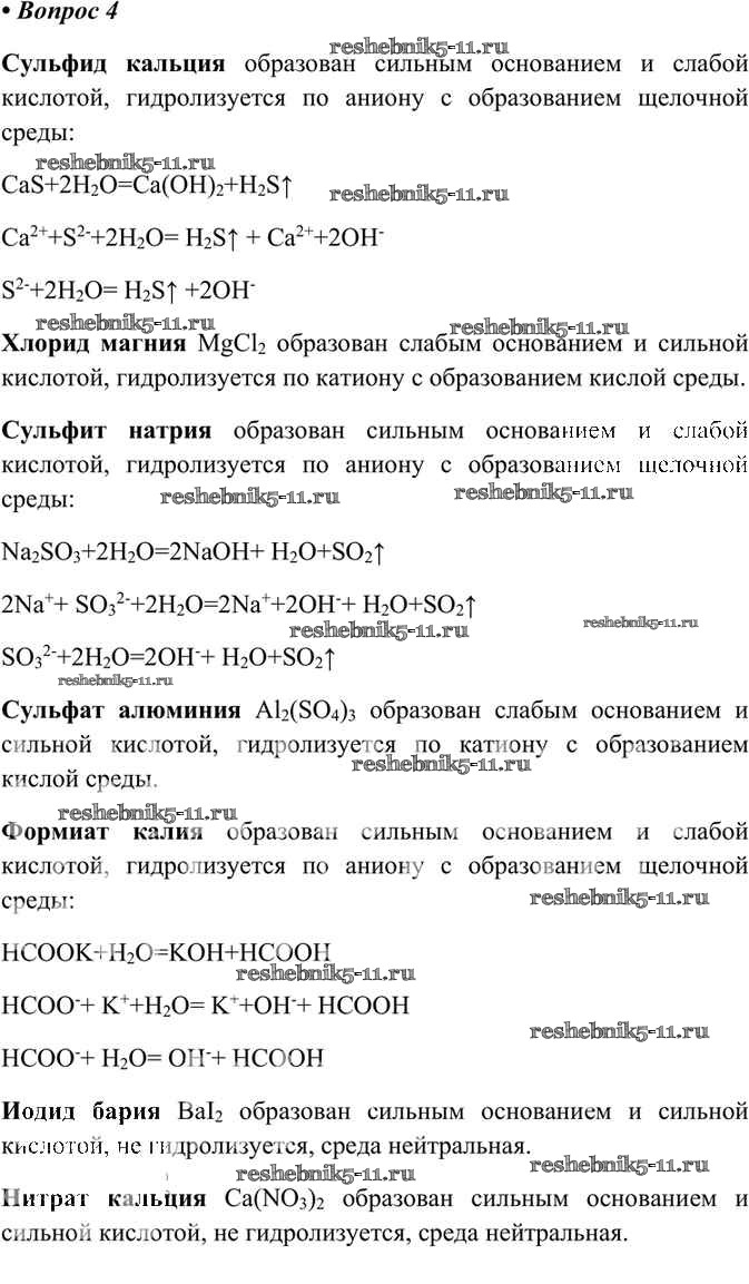 Готовая домашняя работа с ответами по Химии за 11 класс Габриелян, Лысова Учебник Вертикаль Углубленный уровень Дрофа 2017 ФГОС - §16. Гидролиз 4