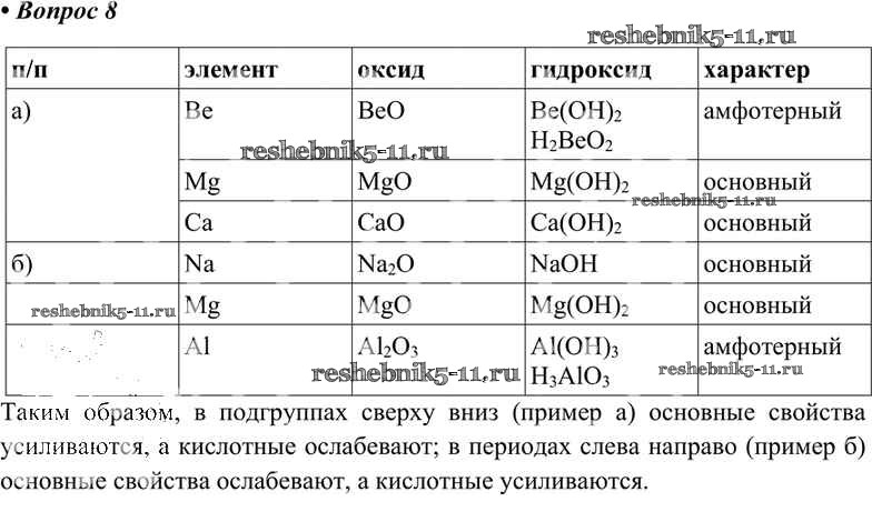 Готовая домашняя работа с ответами по Химии за 11 класс Габриелян, Лысова Учебник Вертикаль Углубленный уровень Дрофа 2017 ФГОС - §18. Общая характеристика металлов и их соединений 8