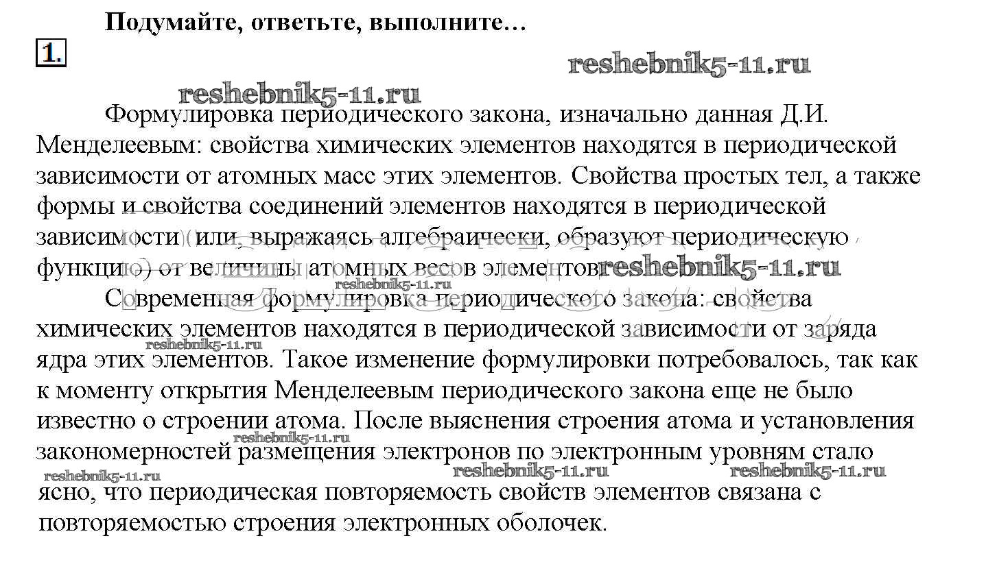 Химия за 11 класс Рудзитис Учебник Базовый уровень Просвещение подумайте, ответьте, выполните 1