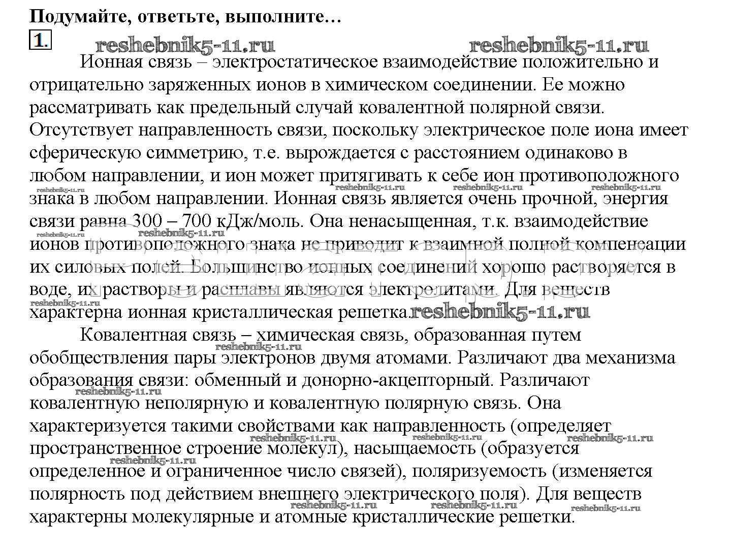Готовая домашняя работа с ответами по Химии за 11 класс Рудзитис, Фельдман Учебник Базовый уровень Просвещение 2017 ФГОС - Подумайте, ответьте, выполните 1