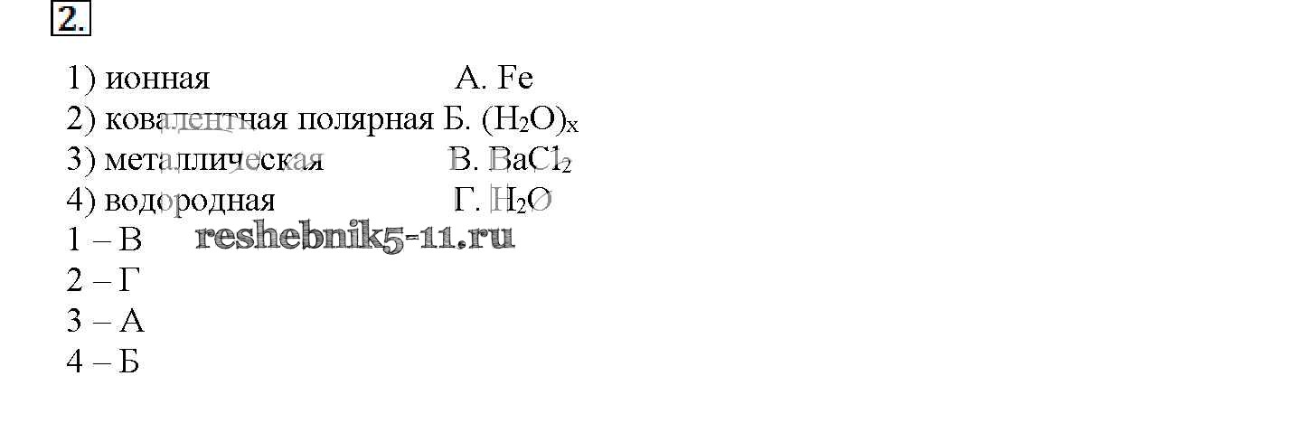 Готовая домашняя работа с ответами по Химии за 11 класс Рудзитис, Фельдман Учебник Базовый уровень Просвещение 2017 ФГОС - Тестовые задания 2