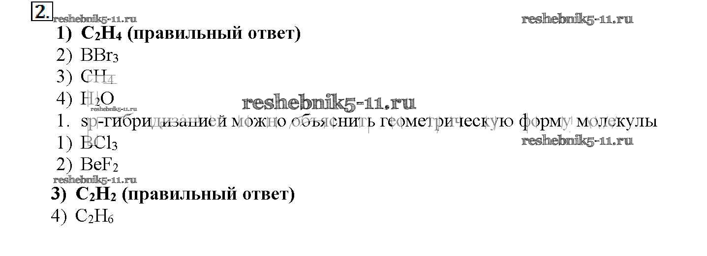 Готовая домашняя работа с ответами по Химии за 11 класс Рудзитис, Фельдман Учебник Базовый уровень Просвещение 2017 ФГОС - Тестовые задания 2