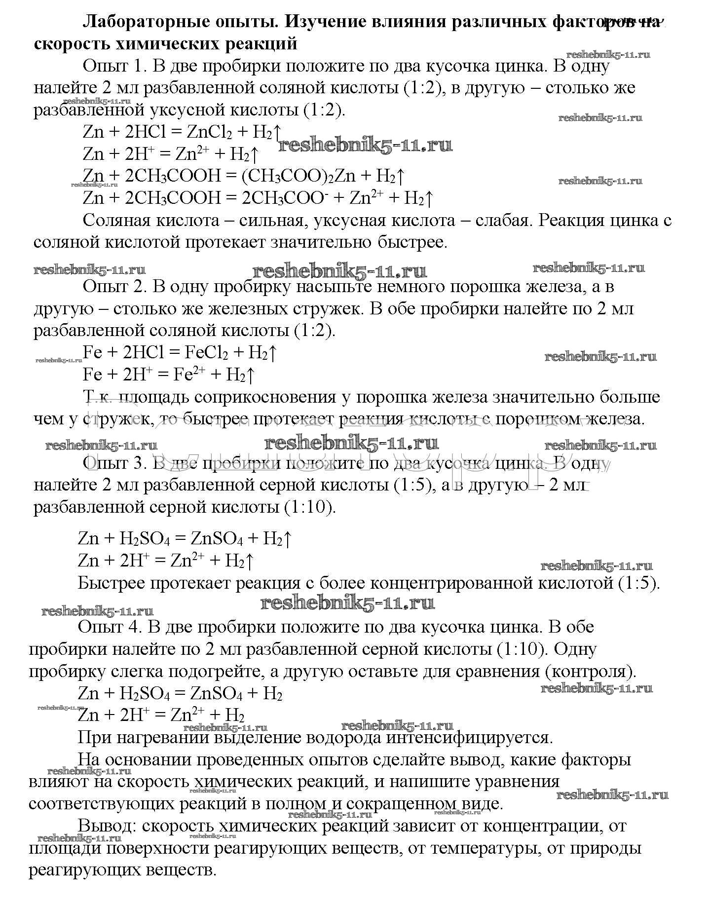 Готовая домашняя работа с ответами по Химии за 11 класс Рудзитис, Фельдман Учебник Базовый уровень Просвещение 2017 ФГОС - Лабораторный опыт. Изучение влияния различных факторов на скорость химических реакций 1
