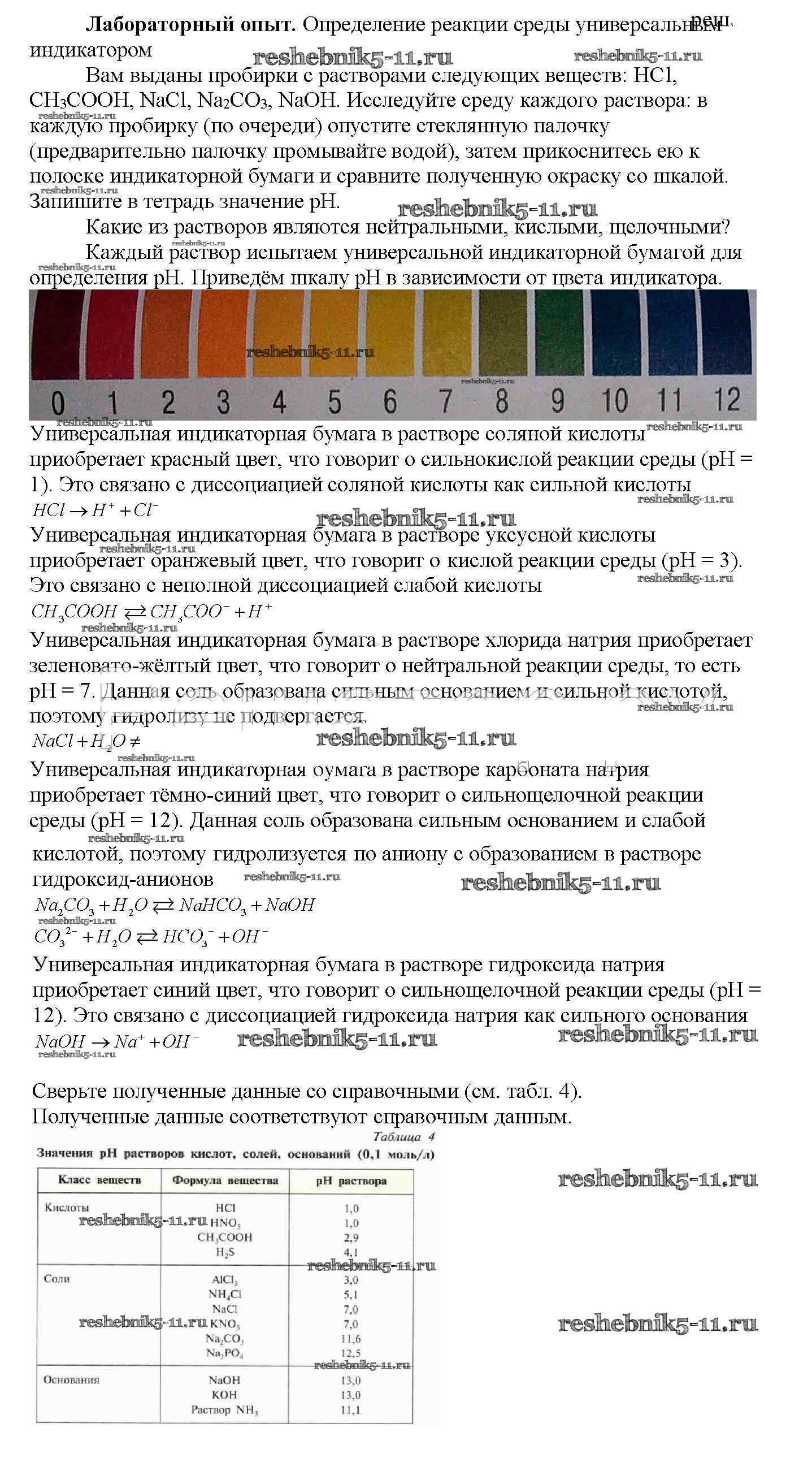 Готовая домашняя работа с ответами по Химии за 11 класс Рудзитис, Фельдман Учебник Базовый уровень Просвещение 2017 ФГОС - Лабораторный опыт. Определение реакции среды универсальным индикатором 1