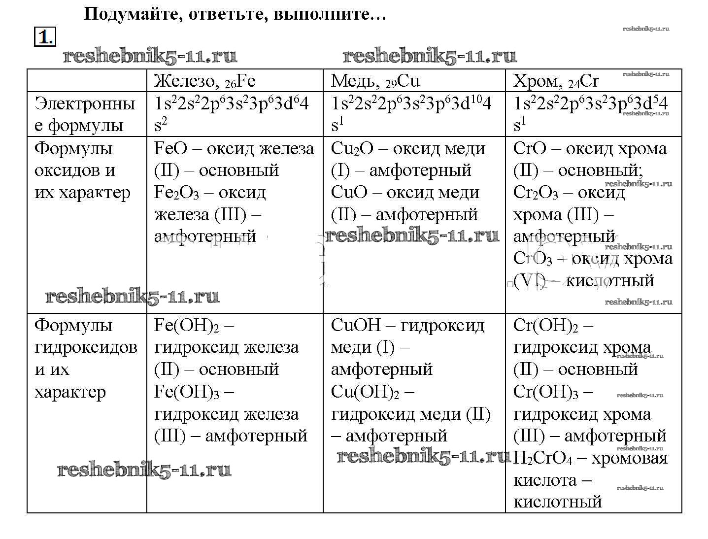Готовая домашняя работа с ответами по Химии за 11 класс Рудзитис, Фельдман Учебник Базовый уровень Просвещение 2017 ФГОС - Подумайте, ответьте, выполните 1