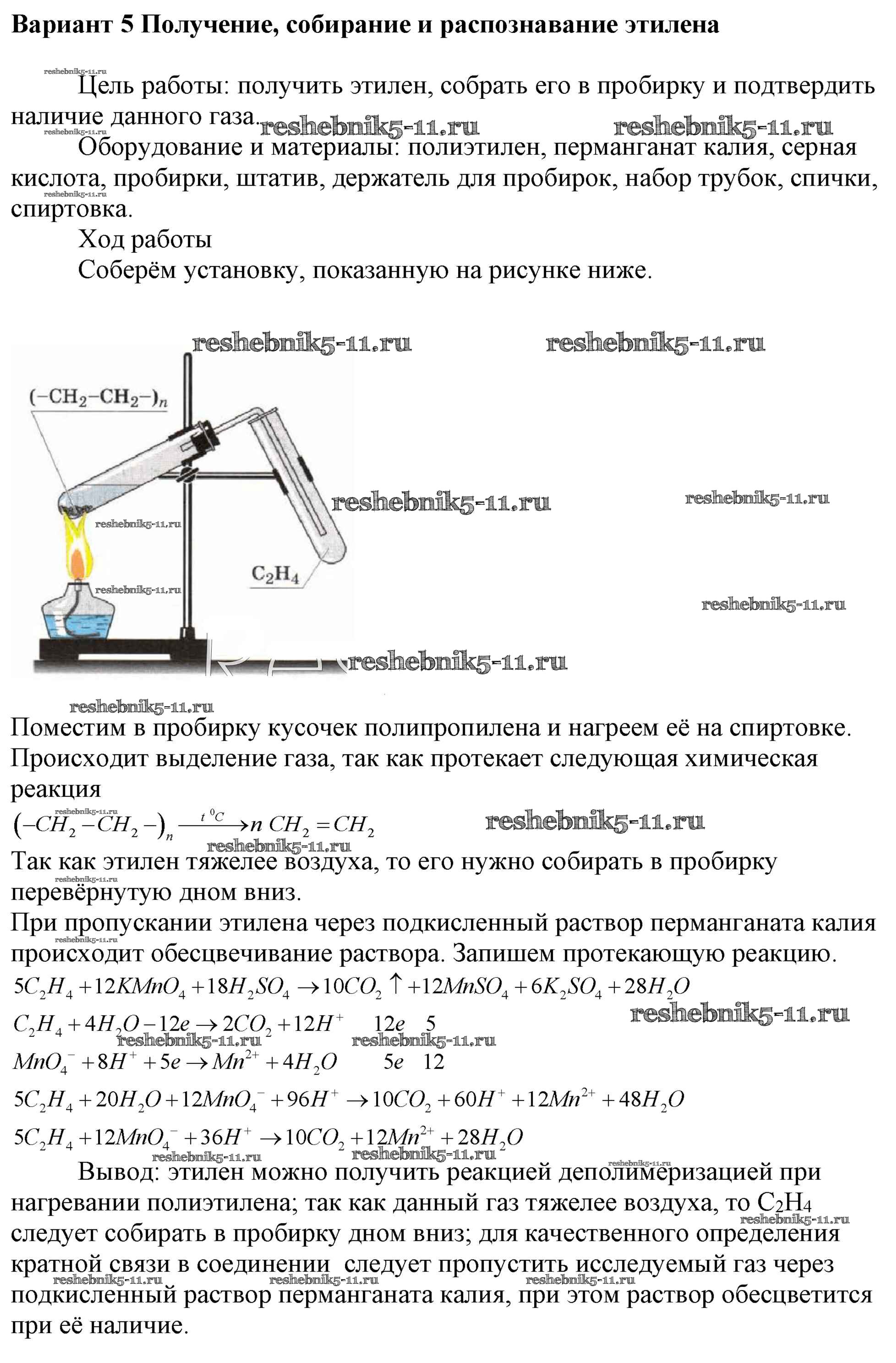 Готовая домашняя работа с ответами по Химии за 11 класс Габриелян Учебник Вертикаль Базовый уровень Дрофа 2013 ФГОС - Практическая работа 1. Получение собирание и распознавание газов 5