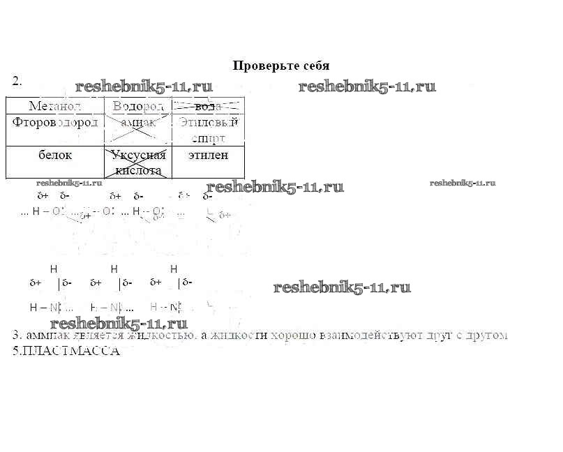 Готовая домашняя работа с ответами по Химии за 11 класс Габриелян, Яшукова Рабочая тетрадь Базовый уровень Дрофа 2014 - Водородная связь. Единая природа химических связей Проверьте себя