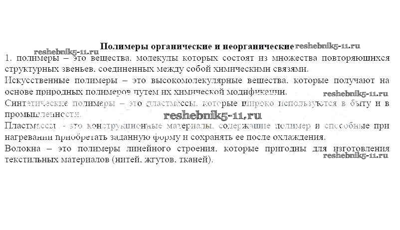 Готовая домашняя работа с ответами по Химии за 11 класс Габриелян, Яшукова Рабочая тетрадь Базовый уровень Дрофа 2014 - Полимеры органические и неорганические 1
