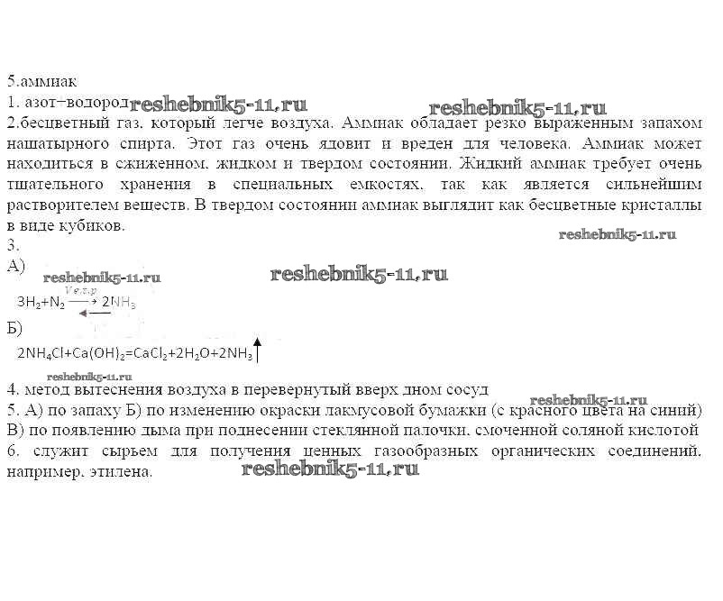 Готовая домашняя работа с ответами по Химии за 11 класс Габриелян, Яшукова Рабочая тетрадь Базовый уровень Дрофа 2014 - Представители газов (водород, кислород, углекислый газ, аммиак, этилен) 5