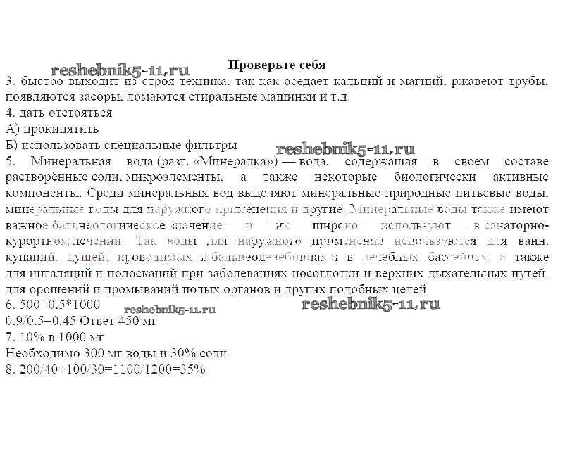 Решебник / Жидкое состояние веществ. Вода. Массовая доля растворенного вещества / проверьте себя