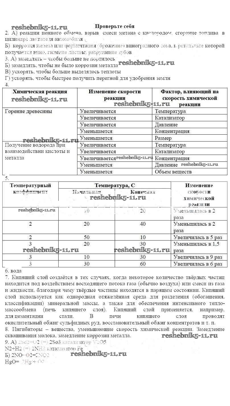Решебник / Скорость химической реакции / проверьте себя