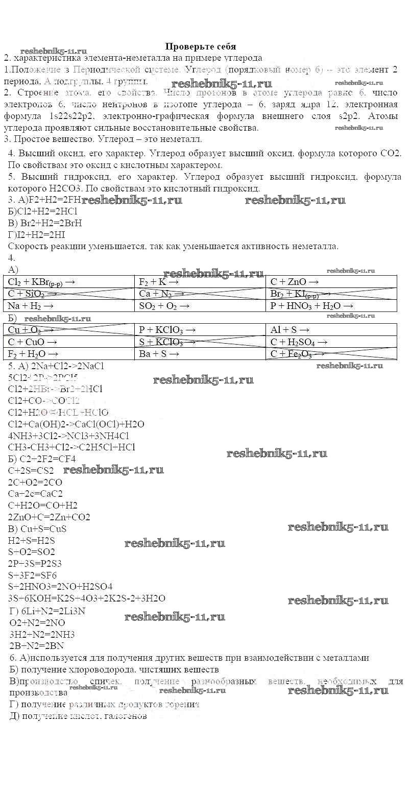 Готовая домашняя работа с ответами по Химии за 11 класс Габриелян, Яшукова Рабочая тетрадь Базовый уровень Дрофа 2014 - Неметаллы Проверьте себя