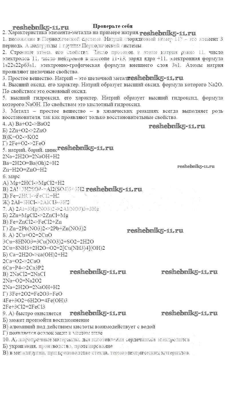 Готовая домашняя работа с ответами по Химии за 11 класс Габриелян, Яшукова Рабочая тетрадь Базовый уровень Дрофа 2014 - Металлы Проверьте себя
