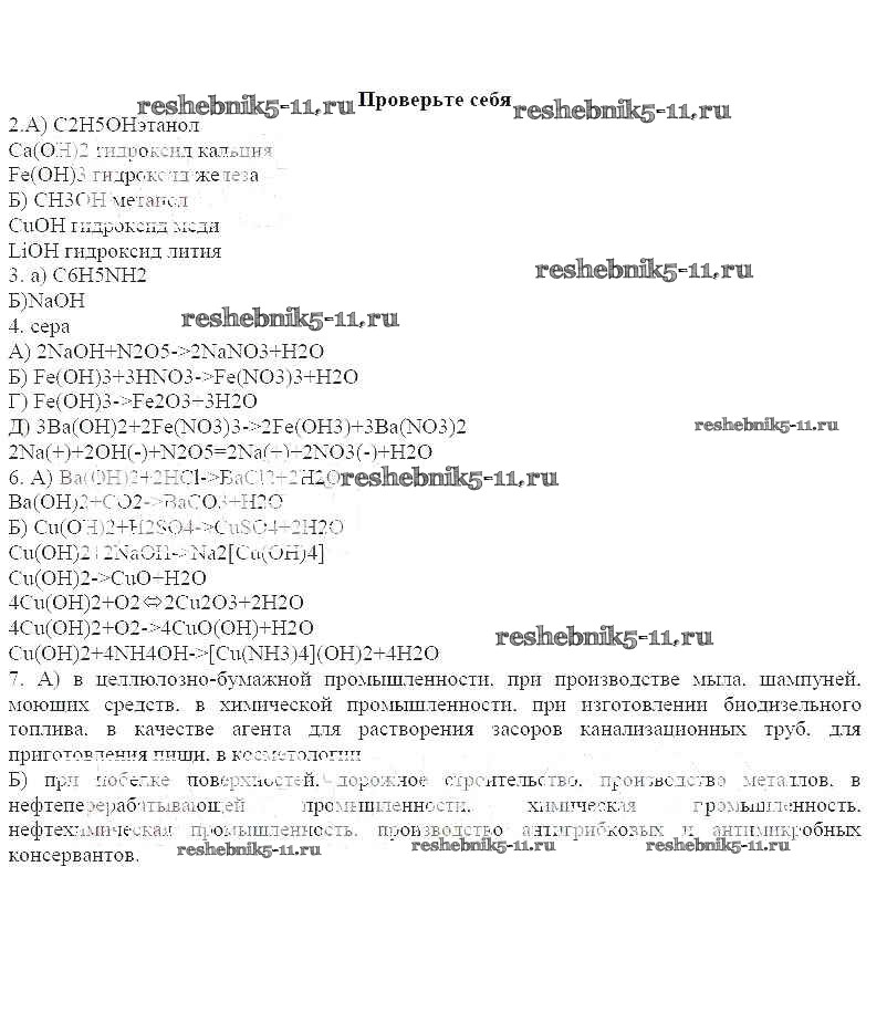 Готовая домашняя работа с ответами по Химии за 11 класс Габриелян, Яшукова Рабочая тетрадь Базовый уровень Дрофа 2014 - Основания Проверьте себя