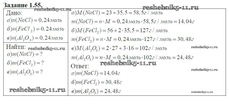 Готовая домашняя работа с ответами по Химии за 8, 9, 10, 11 класс Хомченко Сборник задач и упражнений Новая волна 2011 ФГОС - Глава 1 55