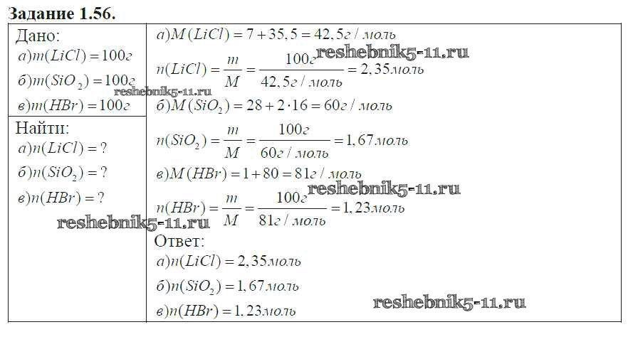 Готовая домашняя работа с ответами по Химии за 8, 9, 10, 11 класс Хомченко Сборник задач и упражнений Новая волна 2011 ФГОС - Глава 1 56