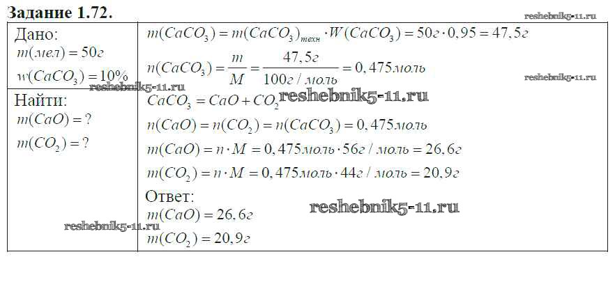 Готовая домашняя работа с ответами по Химии за 8, 9, 10, 11 класс Хомченко Сборник задач и упражнений Новая волна 2011 ФГОС - Глава 1 72