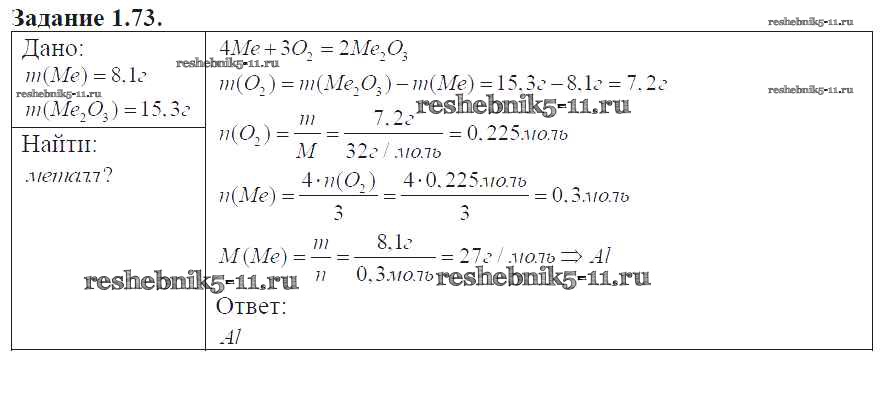 Готовая домашняя работа с ответами по Химии за 8, 9, 10, 11 класс Хомченко Сборник задач и упражнений Новая волна 2011 ФГОС - Глава 1 73