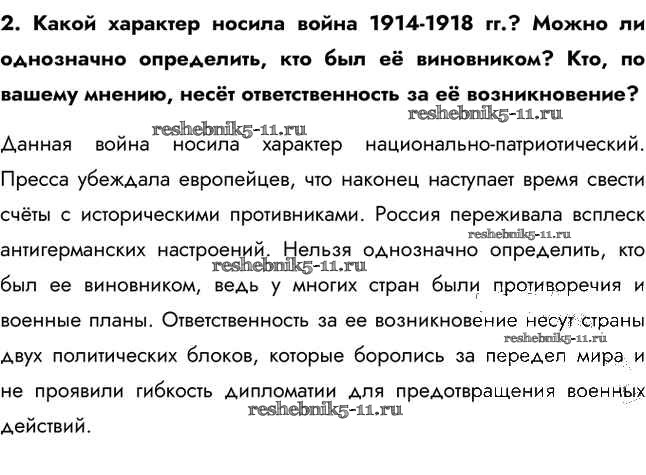 Готовая домашняя работа с ответами по Истории за 11 класс Загладин, Петров Учебник Инновационная школа Базовый уровень Русское слово 2014 ФГОС - Вопросы и задания 2