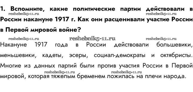 Готовая домашняя работа с ответами по Истории за 11 класс Загладин, Петров Учебник Инновационная школа Базовый уровень Русское слово 2014 ФГОС - Вопросы в начале параграфа 1