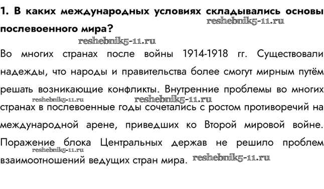Готовая домашняя работа с ответами по Истории за 11 класс Загладин, Петров Учебник Инновационная школа Базовый уровень Русское слово 2014 ФГОС - Вопросы в начале параграфа 1