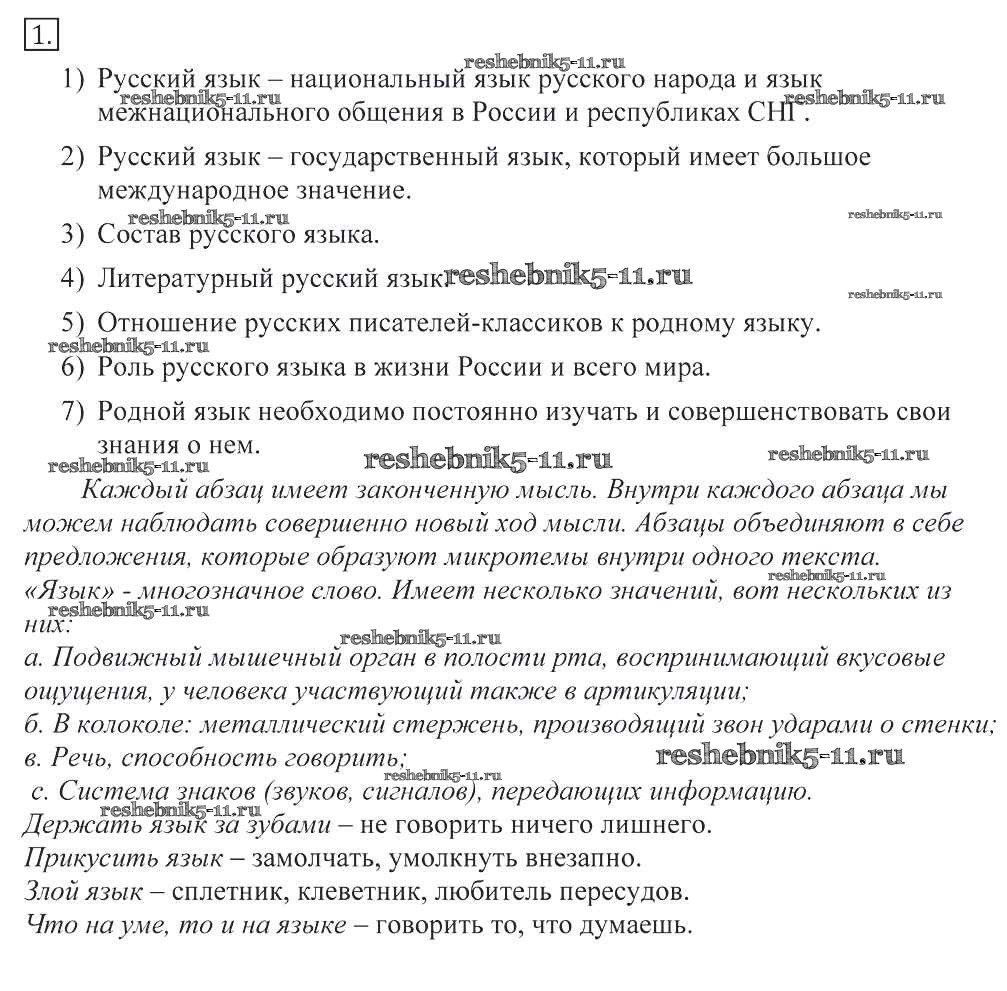 Готовая домашняя работа с ответами по Русскому языку за 10, 11 класс Греков, Крючков, Чешко Учебник Просвещение 2016 - Упражнения 1