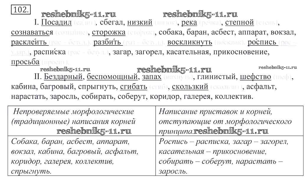 Готовая домашняя работа с ответами по Русскому языку за 10, 11 класс Греков, Крючков, Чешко Учебник Просвещение 2016 - Упражнения 102
