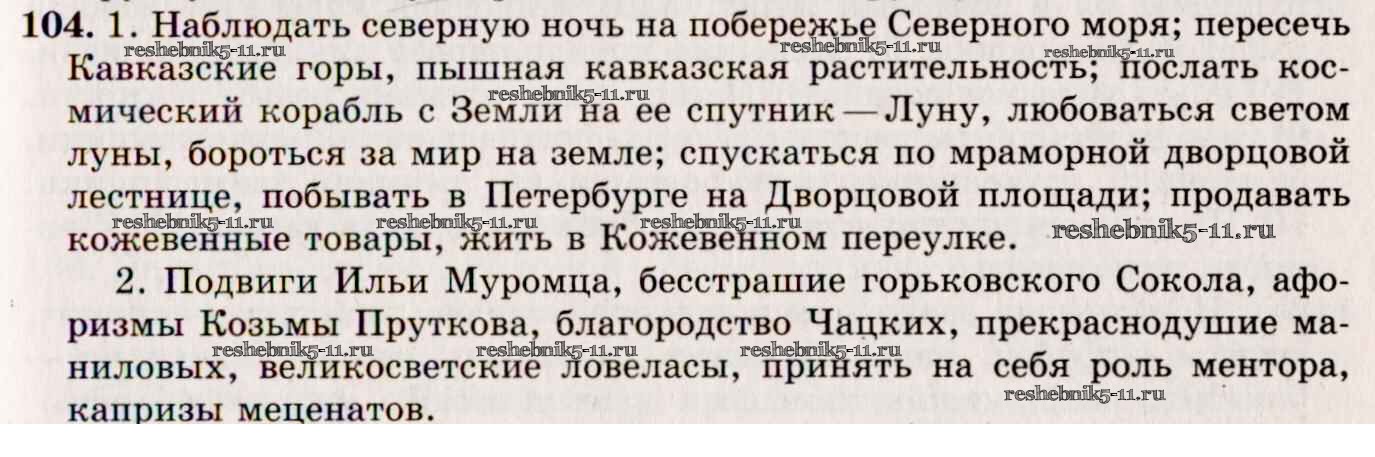 Готовая домашняя работа с ответами по Русскому языку за 10, 11 класс Греков, Крючков, Чешко Учебник Просвещение 2016 - Упражнения 104