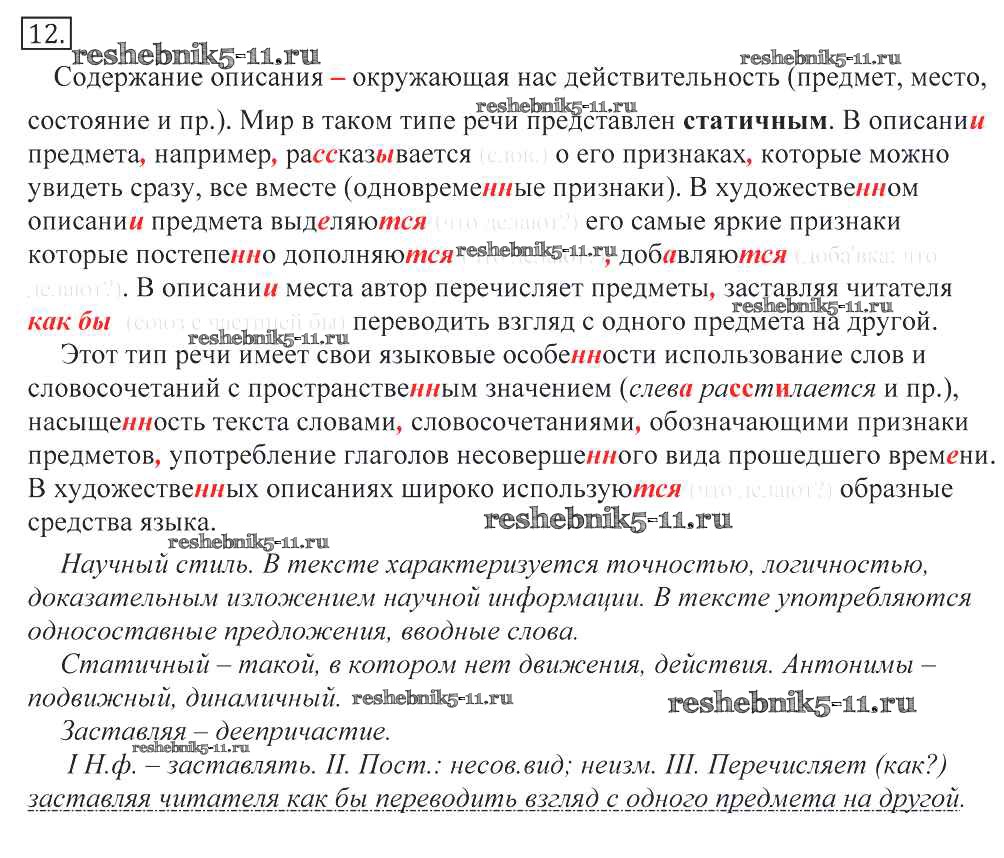 Готовая домашняя работа с ответами по Русскому языку за 10, 11 класс Греков, Крючков, Чешко Учебник Просвещение 2016 - Упражнения 12