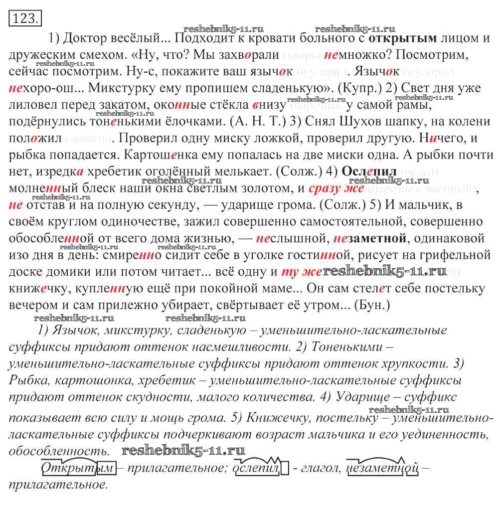 Готовая домашняя работа с ответами по Русскому языку за 10, 11 класс Греков, Крючков, Чешко Учебник Просвещение 2016 - Упражнения 123