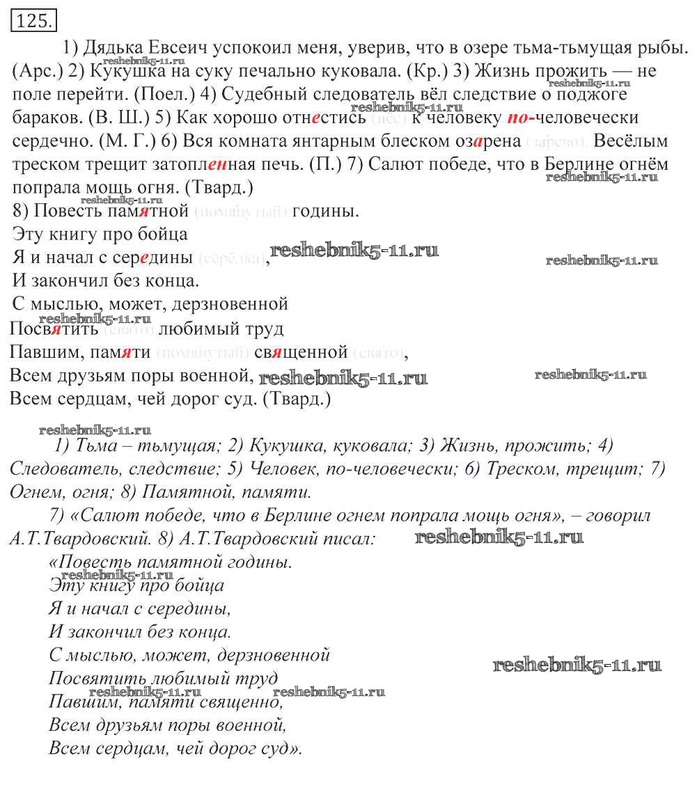 Готовая домашняя работа с ответами по Русскому языку за 10, 11 класс Греков, Крючков, Чешко Учебник Просвещение 2016 - Упражнения 125