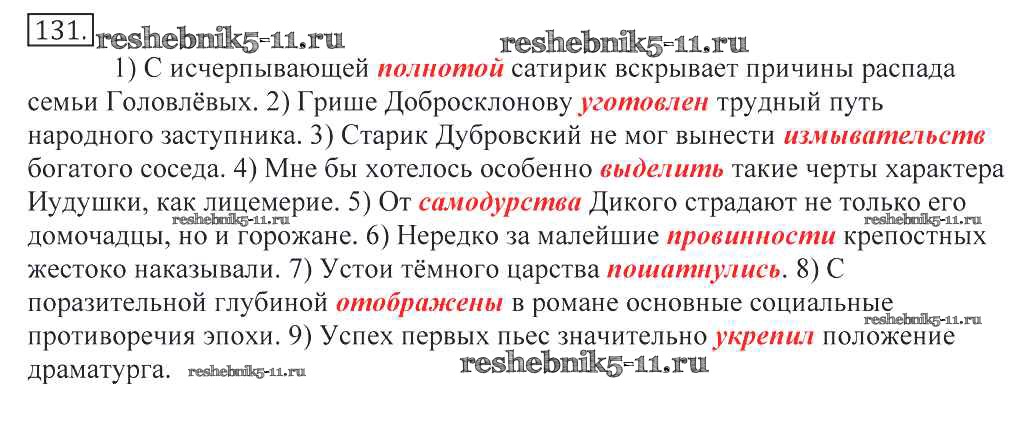 Готовая домашняя работа с ответами по Русскому языку за 10, 11 класс Греков, Крючков, Чешко Учебник Просвещение 2016 - Упражнения 131