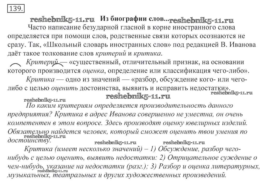 Готовая домашняя работа с ответами по Русскому языку за 10, 11 класс Греков, Крючков, Чешко Учебник Просвещение 2016 - Упражнения 139