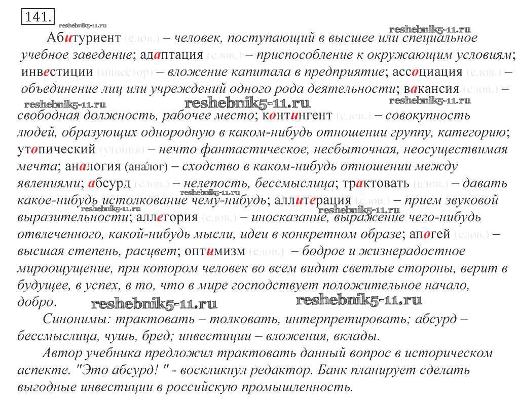 Готовая домашняя работа с ответами по Русскому языку за 10, 11 класс Греков, Крючков, Чешко Учебник Просвещение 2016 - Упражнения 141