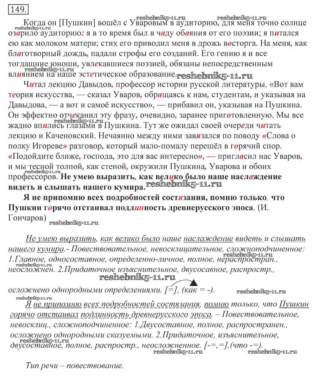 Готовая домашняя работа с ответами по Русскому языку за 10, 11 класс Греков, Крючков, Чешко Учебник Просвещение 2016 - Упражнения 149