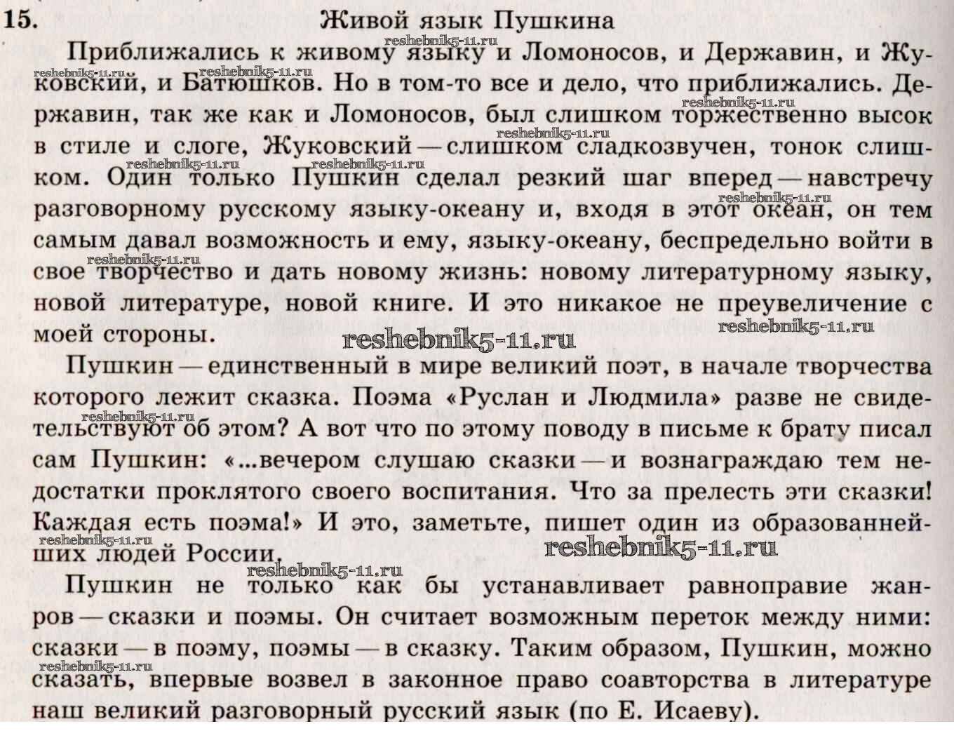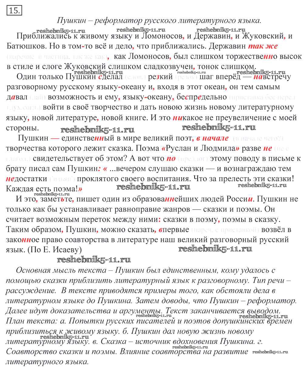 Готовая домашняя работа с ответами по Русскому языку за 10, 11 класс Греков, Крючков, Чешко Учебник Просвещение 2016 - Упражнения 15