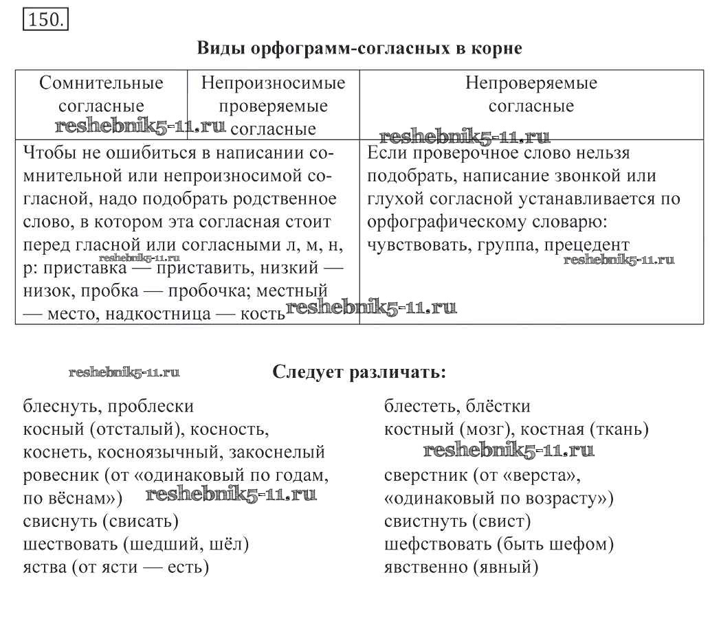 Готовая домашняя работа с ответами по Русскому языку за 10, 11 класс Греков, Крючков, Чешко Учебник Просвещение 2016 - Упражнения 150