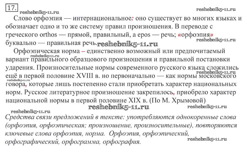 Готовая домашняя работа с ответами по Русскому языку за 10, 11 класс Греков, Крючков, Чешко Учебник Просвещение 2016 - Упражнения 17