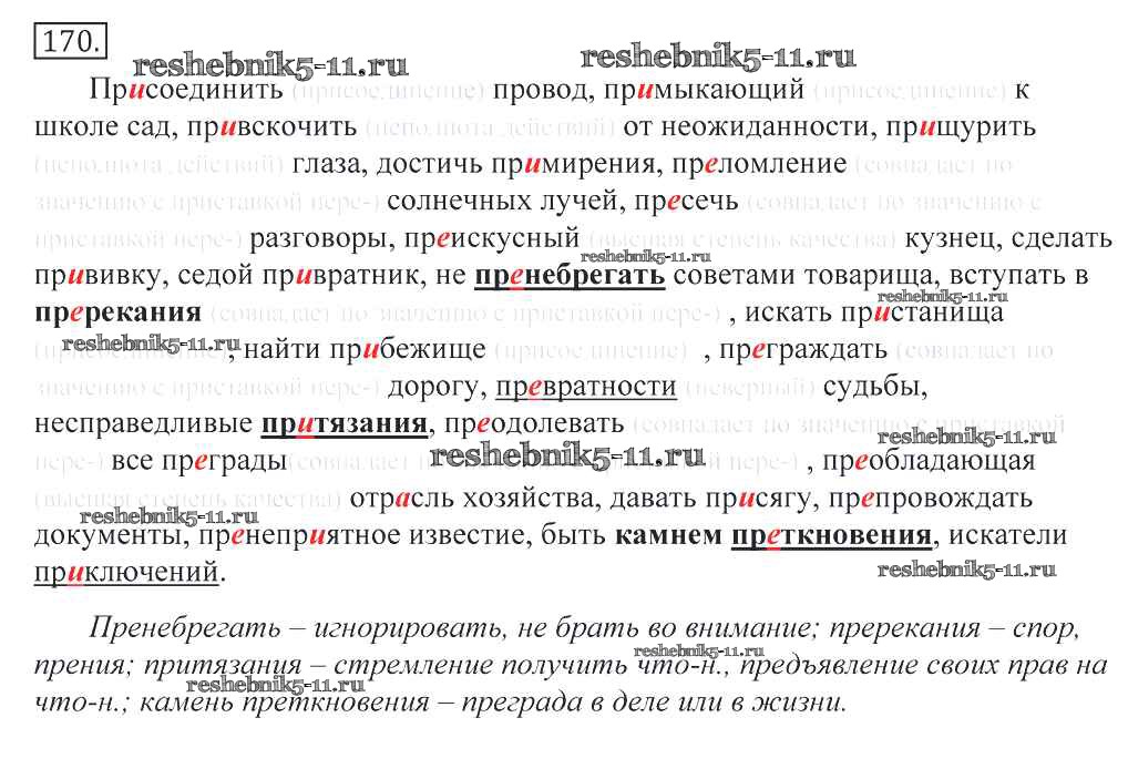 Готовая домашняя работа с ответами по Русскому языку за 10, 11 класс Греков, Крючков, Чешко Учебник Просвещение 2016 - Упражнения 170