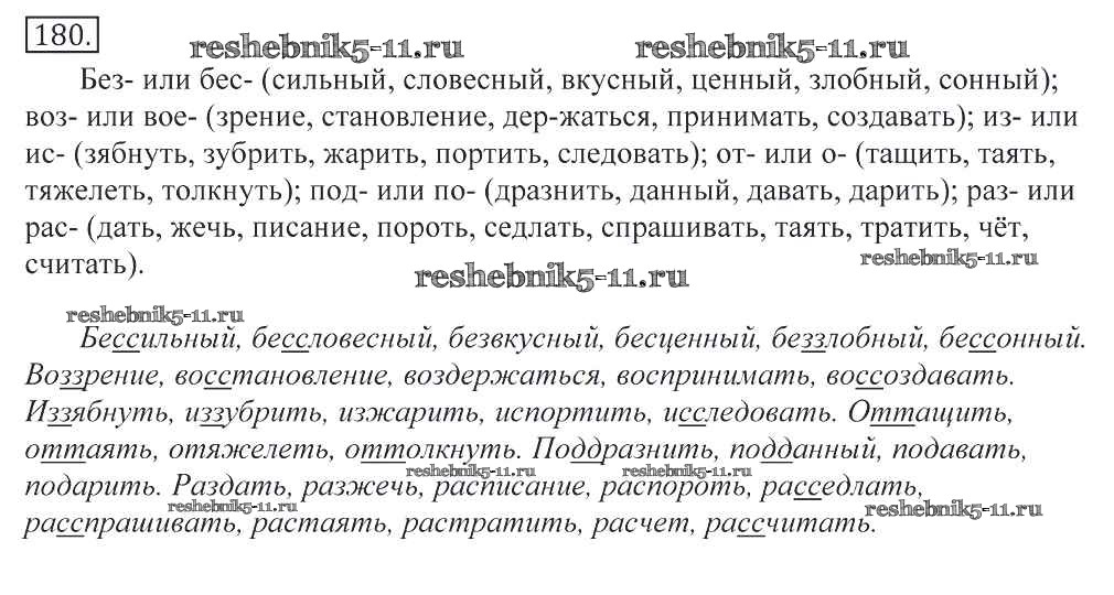 Готовая домашняя работа с ответами по Русскому языку за 10, 11 класс Греков, Крючков, Чешко Учебник Просвещение 2016 - Упражнения 180