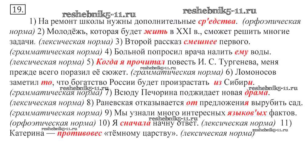 Готовая домашняя работа с ответами по Русскому языку за 10, 11 класс Греков, Крючков, Чешко Учебник Просвещение 2016 - Упражнения 19