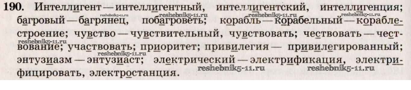 Готовая домашняя работа с ответами по Русскому языку за 10, 11 класс Греков, Крючков, Чешко Учебник Просвещение 2016 - Упражнения 190